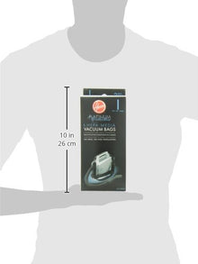 Ideal for allergy sufferers, this set of two HEPA vacuum-cleaner bags effectively traps 99.97-percent of dust and pollens down to .3 microns. Because over-filled vacuum bags lead to reduced suction, vacuum-cleaner manufacturers recommend changing bags as needed in order to maintain optimal performance. Designed for easy installation, the bags offer mess-free changing without unseemly puffs of dust and debris. For use with a Hoover UH30010COM canister vacuum cleaner, the set of two vacuum bags measures approximately 4 by 2-4/5 by 9-3/5 inches.