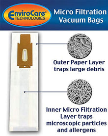 Bolsas Oreck tipo CC "Filtración superior" Paquete de 6 Parte AK1CC6H AK1CC6H es el artículo de reemplazo certificado por Oreck para las bolsas de filtración Oreck CCPK8OH. Las 5 capas de filtración de medios HEPA atrapan al menos el 99,97% de partículas de 0,3 micrones, incluidos alérgenos, esporas de moho, polen, caspa, polvo y humo: ...